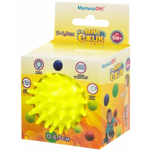 Мяч Малышок Ежик 6012221012, 8.5 см, желтый