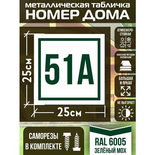 Адресная табличка на дом с номером 51а RAL 6005 зеленая