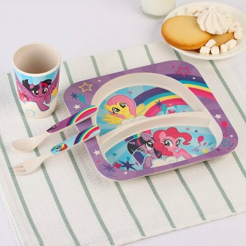 Набор детской бамбуковой посуды, 4 предмета, Дракон в пакете оранжевый, разноцветный
