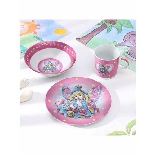 Набор детской посуды Доляна "Единорог", 3 предмета 250 мл, миска 400 мл, тарелка 18 см