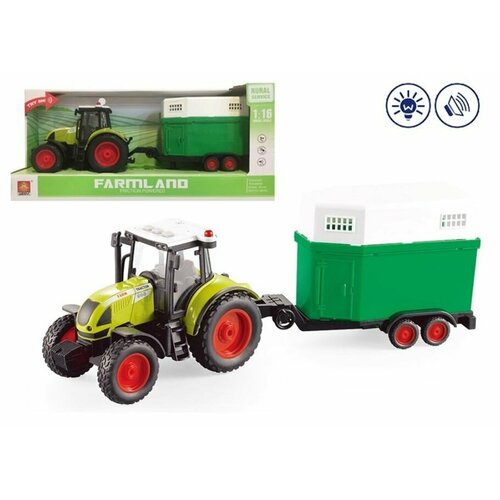 Машинка игрушечная Трактор 1:16 инерционный на батарейках(свет, звук) с прицепом
