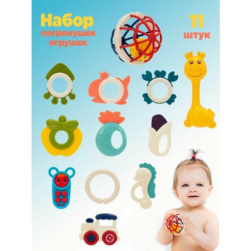 Цены на Набор погремушек для новорожденных голубой, оранжевый, белый, зеленый, желтый, синий, красный в г. Воронеж