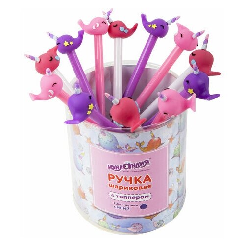 Ручка с топпером шариковая юнландия "Кит-Единорог", корпус ассорти, синяя, пишущий узел 0,7 мм, 143783 В комплекте: 12шт.