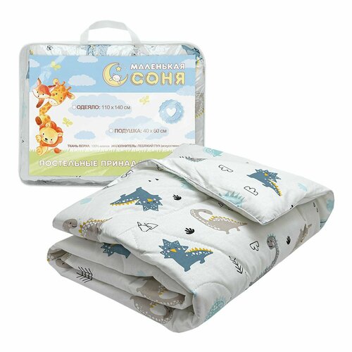 Одеяло детское в кроватку 110*140 см Маленькая Соня Лебяжий пух Динопупсики/ гипоаллергенное, легкое, для малышей