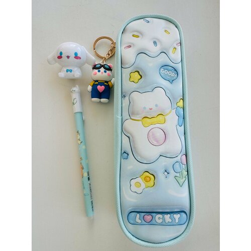 Школьный пенал 3Д с брелком + подарок ручка и точилка