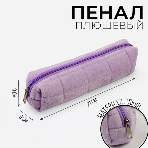 Пенал школьный мягкий 21х8 см, плюш, сиреневый цвет