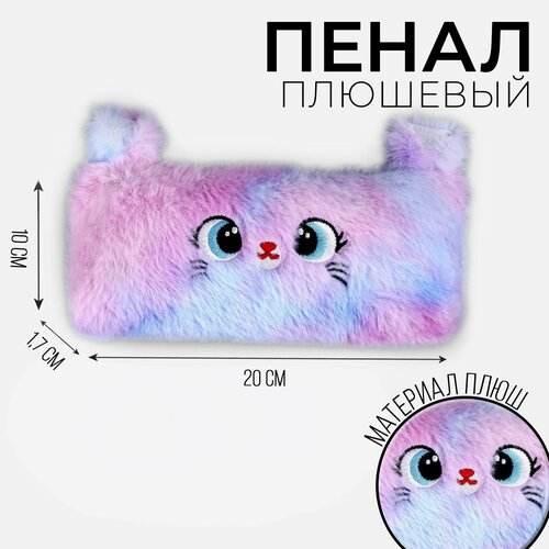 Пенал школьный мягкий «Котик», 20 × 10 см, плюш, (комплект из 5 шт)