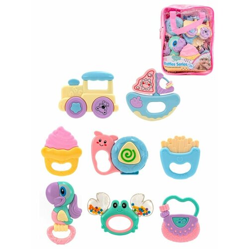 Набор из 6 погремушек прорезывателей в прозрачной упаковке.