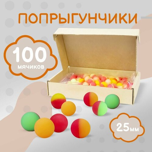 Попрыгунчик - 25 мм / Каучуковый мячик попрыгун 100 шт. / Неон - Набор мячей прыгунов для игр