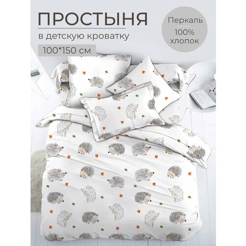 Простыня 100*150 см в детскую кроватку, перкаль, детская расцветка (Ёжики)