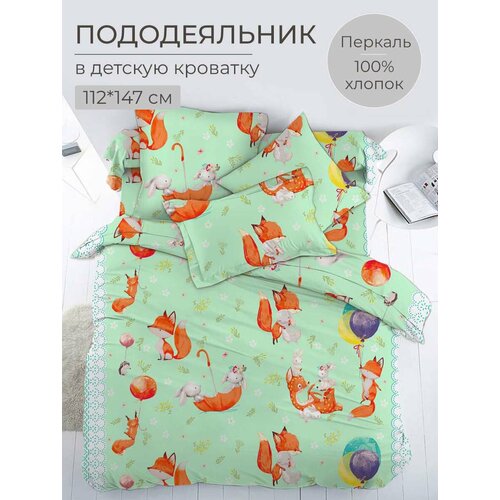 Пододеяльник 112*147 см в детскую кроватку, перкаль, детская расцветка (Лисята)