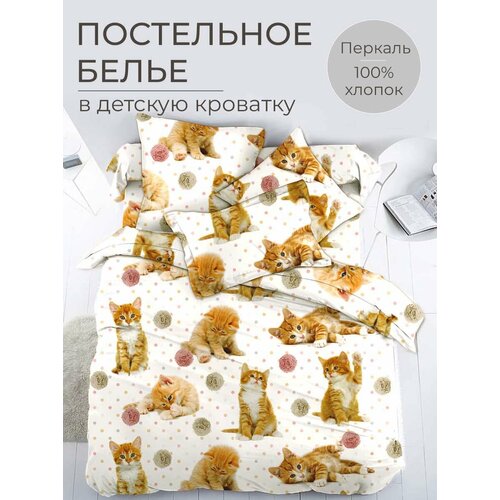 Комплект постельного белья в детскую кроватку, перкаль (Рыжие котята)