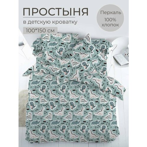 Простыня 100*150 см в детскую кроватку, перкаль, детская расцветка (Диномания)
