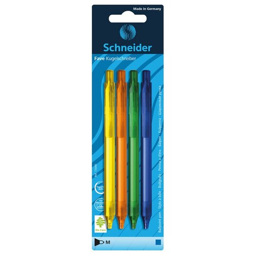 Набор автоматических шариковых ручек Schneider "Fave", синие, 1,0 мм, корпус ассорти, блистер (4 штуки)