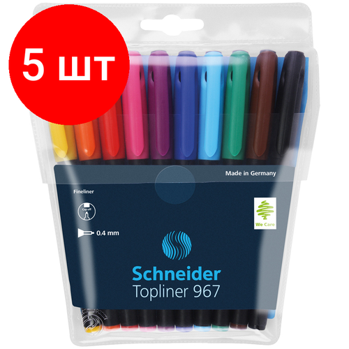Комплект 5 шт, Набор капиллярных ручек Schneider "Topliner 967" 10цв, 0.4мм, европодвес