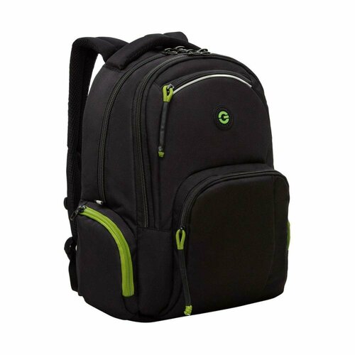 Рюкзак Grizzly, 31*43*20см, 2 отделения, 5 карманов, анатомическая спинка, черный-салатовый