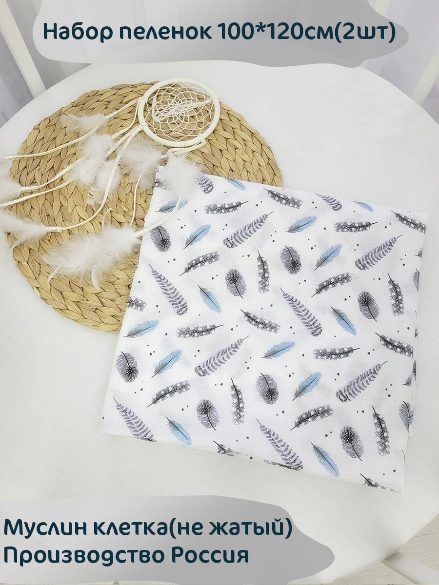 Набор пеленок муслиновых "Пёрышки" 2шт 100*120см НПмусПерышки