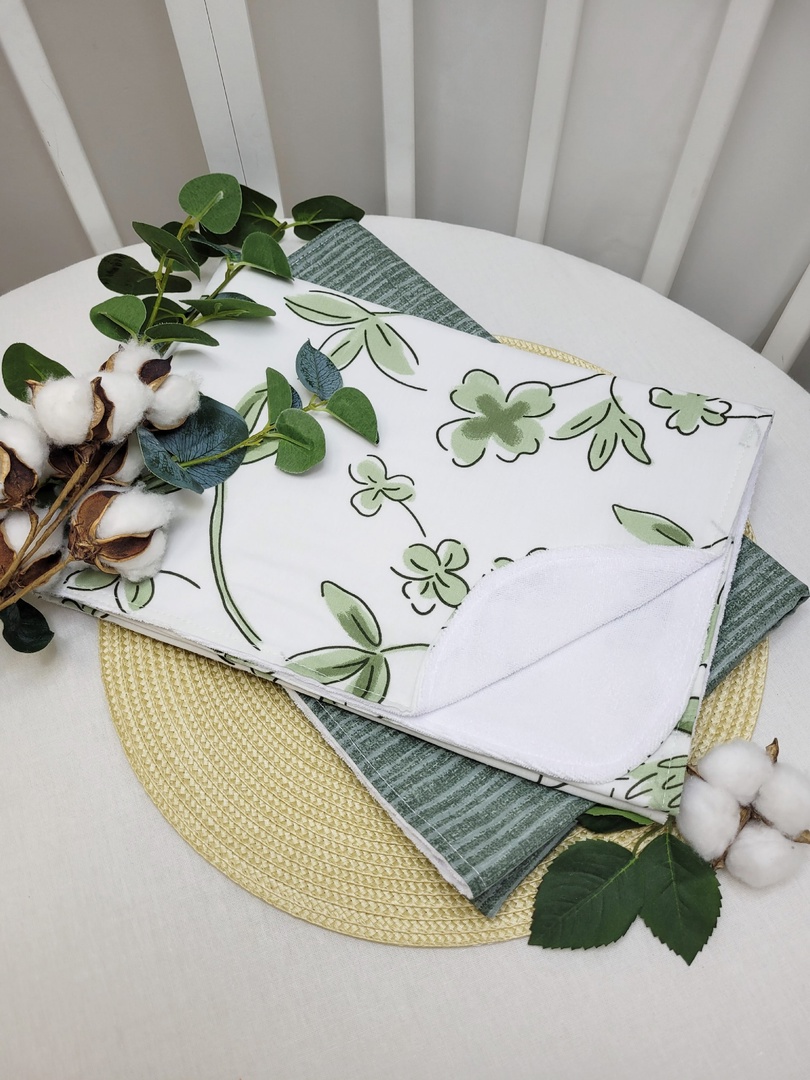 Пеленка детская непромокаемая Салатовые веточки на белом 70х100см ПелСалатВетНаБел
