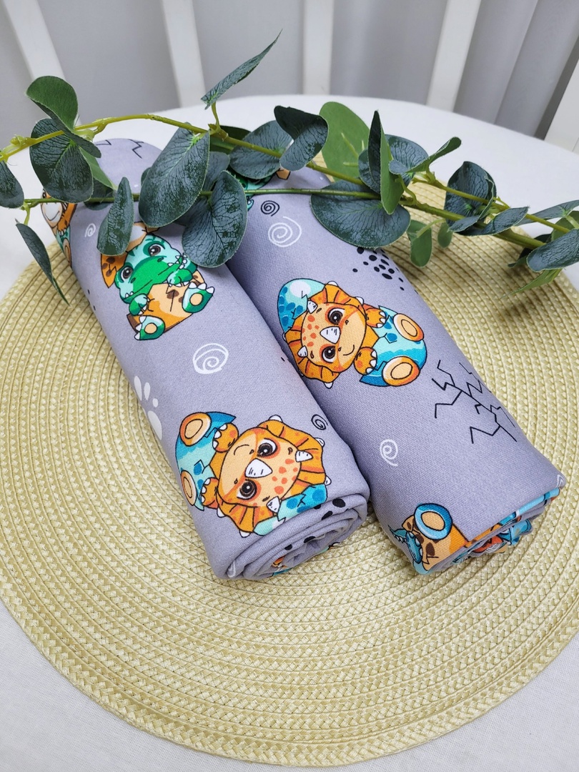 Набор пеленок из футера Динозавры в скорлупе 2шт 90x100см НПФутДинозаврыВСкорлупе