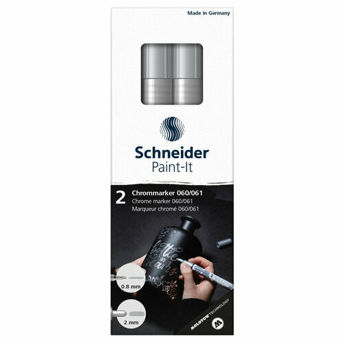 Набор маркеров для декорирования Schneider "Paint-It 060/061" 2шт, хром, 0,8мм + 2мм, картон. упаковка, 351189