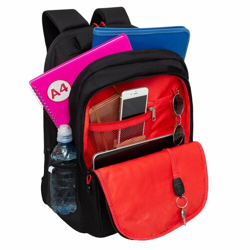 Школьный рюкзак GRIZZLY RB-450-2 черный-красный, 40х25х22