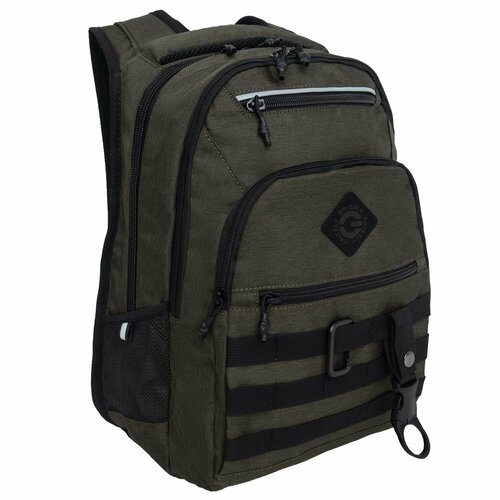 Школьный рюкзак с ортопедической спинкой GRIZZLY RU-334-1 черный - хаки, грудная стяжка, 2 отделения, 29х41,5х18см, 17л