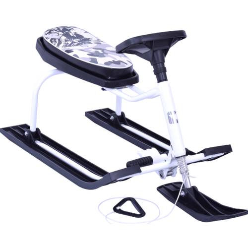 • Надёжная сварная конструкция из стали.• П-образная ручка толкатель.• Руль с ограничителем поворота.• Амортизатор на передней стойке для мягкости хода• Ножной тормоз.• Поролоновое сиденье с верхом из искусственной кожи.• Эргономичная складная спинка с чехлом из искусственной кожи.• Ремень безопасности.• Буксировочный трос: верёвка с ручкой.• Лыжи из морозоустойчивого пластика.