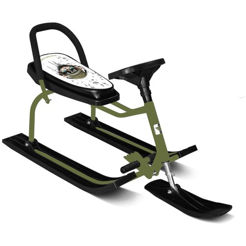 Снегокат Ника-SNOWPATROL рама зеленая со спинкой, трос авт. нам, велоруль