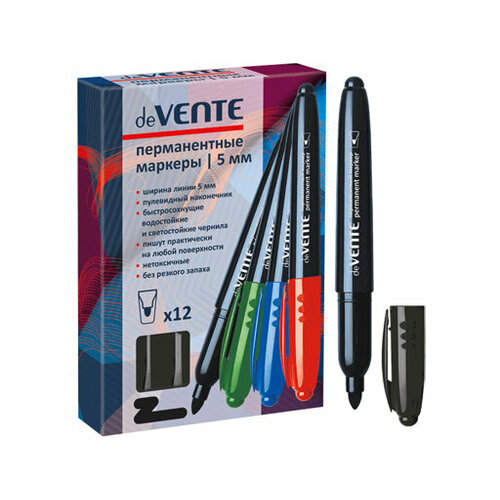 Маркер перманентный deVENTE 5мм, черный 5043734 / набор 12шт