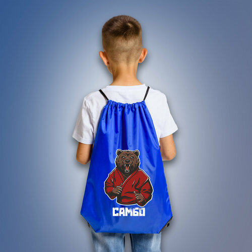 Сумка мешок для обуви Aika с изображением медведя и надписью самбо, синего цвета