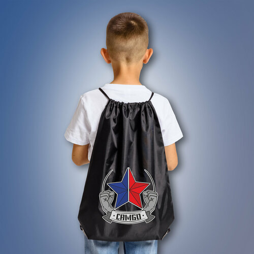 Сумка мешок для обуви Aika с изображением звезды в цветах триколор и надписью самбо, черного цвета
