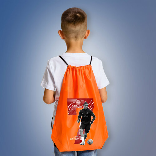 Сумка мешок для обуви Aika "Футбол" с изображением Cristiano Ronaldo (Криштиану Роналду), оранжевого цвета
