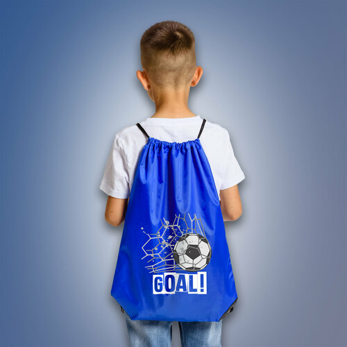 Сумка мешок для обуви Aika "Футбол" с изображением футбольного мяча и надписью GOAL, синего цвета