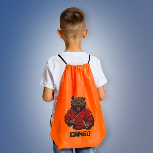 Сумка мешок для обуви Aika с изображением медведя и надписью самбо, оранжевого цвета