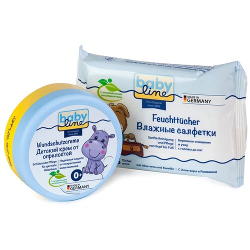 BabyLine Набор: Детский крем от опрелостей под подгузник с миндальным маслом, пантенолом. 150мл + мини-упаковка влажных салфеток 15шт