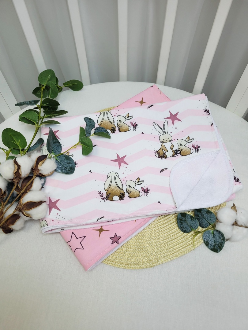 Набор пеленок непромокаемых Зайцы на розовых полосках 2шт 70*100см. НПЗайцыНаРозПол