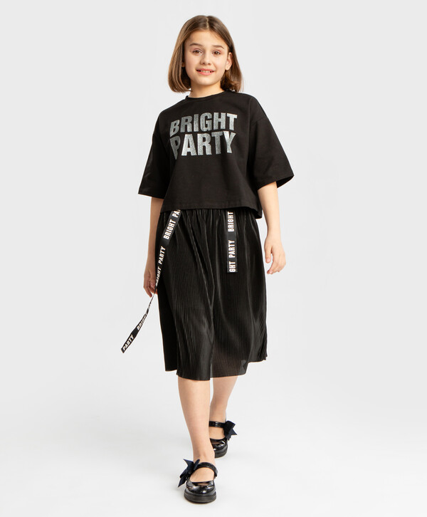 Юбка ниже колена с плиссировкой и поясом на резинке черная Button Blue, 98, 224BBGP5501
