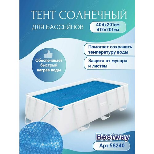 Солнечный плавающий тент Bestway для прямоугольных каркасных и надувных бассейнов 412х201 см