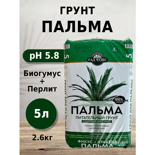 Грунт Сад чудес Пальма 5л с биогумусом, перлитом, минералами для фикусов, драцен, пальм, шефлер, эвкалиптов
