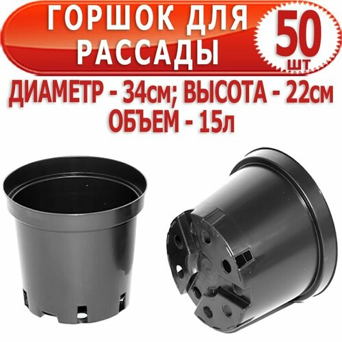 50 шт Горшок для рассады круглый диаметр 34см, высота 22см, объем - 15 л, литье AMINA