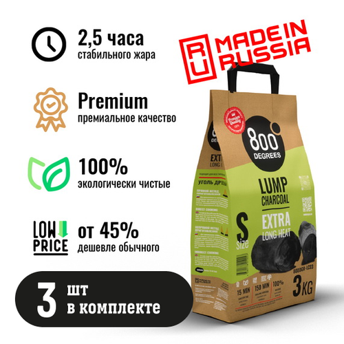 800 Degrees Уголь Lump Charcoal, 3шт по 3кг 48 л, , 3 шт.