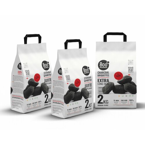 800 Degrees Угольные брикеты 2 шт по 3 кг 8 л, , 2 шт.