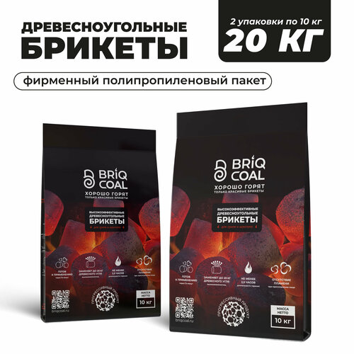 2 упаковки BriqMAX по 10 кг - Высокоэффективные Древесноугольные Брикеты BRIQCOAL