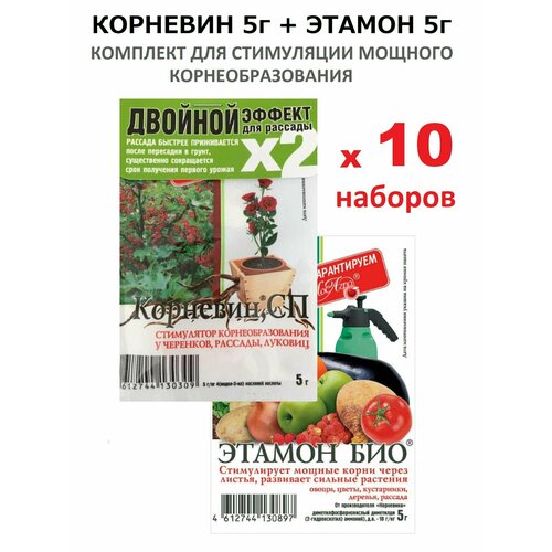 Комплект Двойной эффект для рассады (Корневин 5г + Этамон Био 5г), удобрение для сада и огорода 10 шт