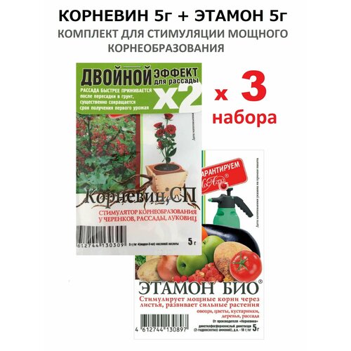 Комплект для рассады: 3 упаковки, в каждой корневин, стимулятор образования и роста корней (5 г) и Этамон био (5 г)