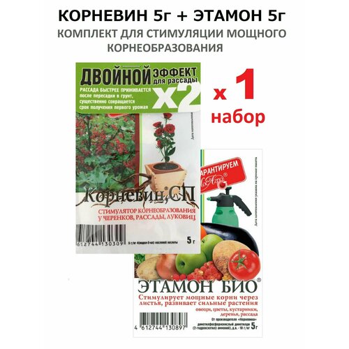 Комплект Двойной эффект для рассады (Корневин 5г + Этамон Био 5г), удобрение для сада и огорода 1 шт