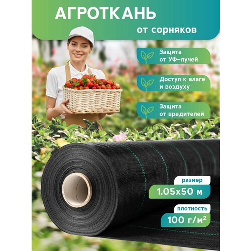 Агроткань от сорняков застилочная для клубники рулон 1,05х50 м, 100 г/м2