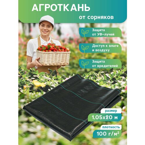 Агроткань от сорняков застилочная для клубники 1,05х20 м, 100 г/м2