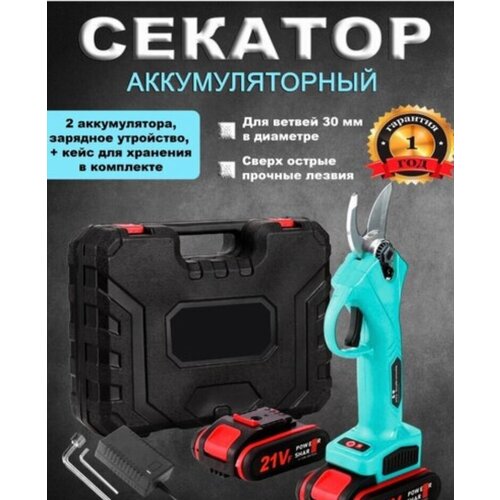 Аккумуляторный секатор-сучкорез Smart, 21 В, 2 А*ч, 2 аккумулятора, кейс голубой, черный, синий