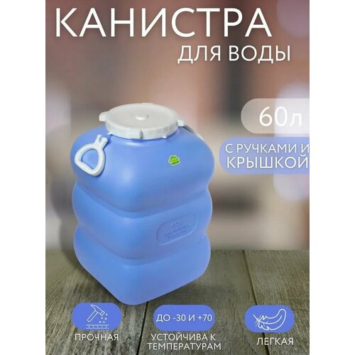 Канистра фляга 60 литров фиолетовая для воды пластиковая. Емкость для хранения сыпучих продуктов с ручками